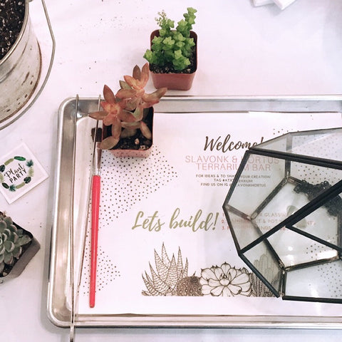 We can accommodate up to 15 people with an Onsite Plant Party in our East Side Studio and we also offer Offsite Plant Parties where we bring the Terrarium Bar to you.