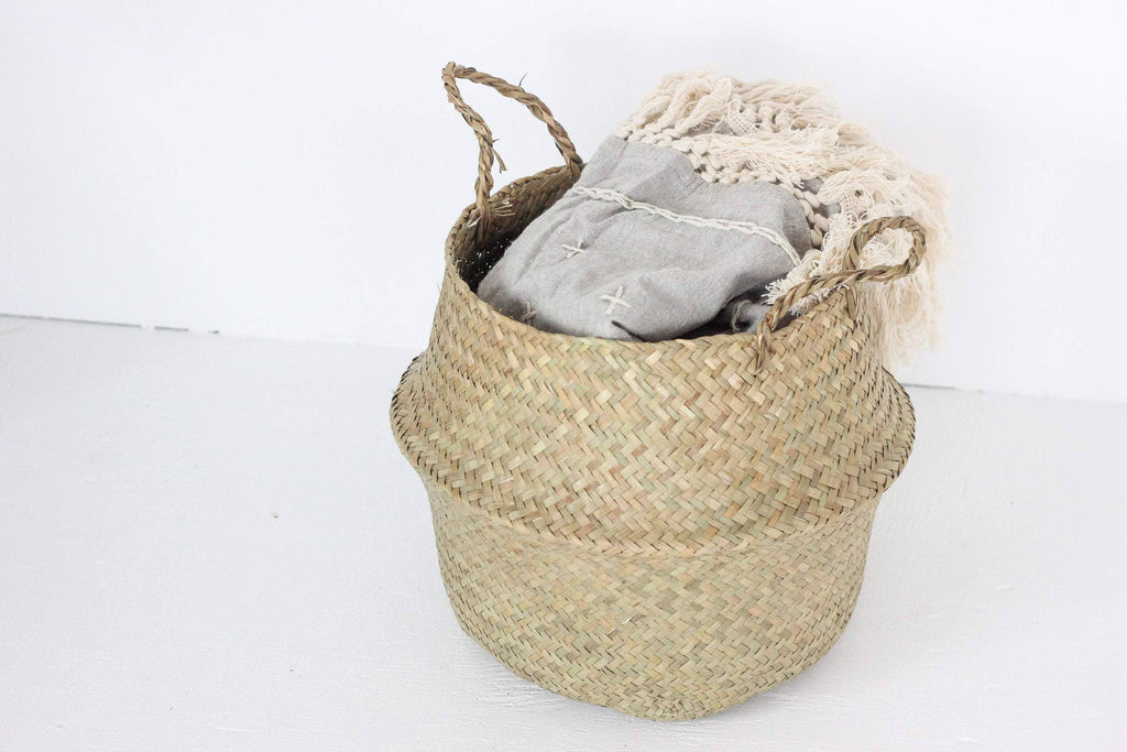 A boho must-have, these seagrass belly baskets are perfect for tabletop or floor plants.