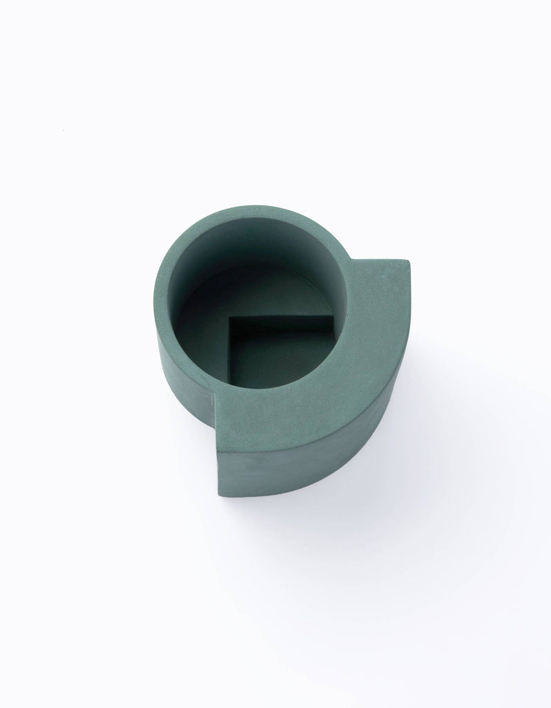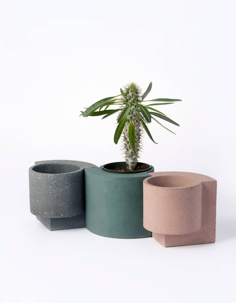 The Platform Planter Collection was designed to connect across color and size to create a multi-level plant landscape. The small planter fits a 4" grow pot and has a recessed drainage area. New mint and jungle colors are made in pigmented concrete and polished to a smooth finish for a modern look. Display on its own or pair with another planter from the modular collection. The collection was inspired by Bauhaus architecture and its emphasis on geometric forms, use of concrete and timeless palette.